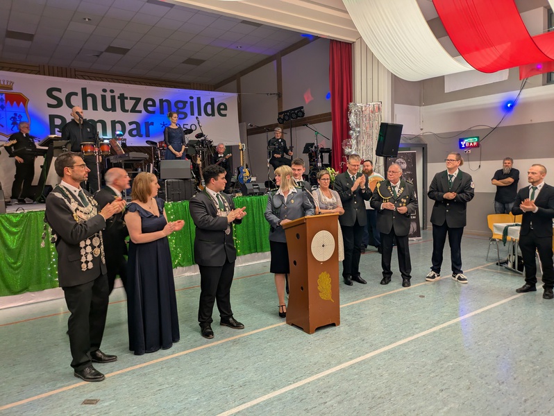 Den Höhepunkt der Veranstaltung bildete die feierliche Proklamation der neuen Würdenträger auf dem traditionellen Königsball. Mit Herbert Escher wurde ein Schützenkönig gekrönt, der von den Anwesenden mit großem Beifall aufgenommen und als Zeichen seiner langjährigen Erfahrung und tiefen Verbundenheit mit der Schützengilde gewürdigt wurde. Als Ritter stehen ihm Ehrenmitglied Roland Keidel sowie Armin Michel zur Seite.